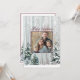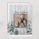 Linda floresta de pinheiros brancos com neve coberta de pinheiros. Adicione sua foto favorita. A imagem de texto Feliz Natal pode ser removida para que você possa adicionar sua própria saudação.