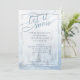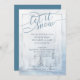 Jantar Convite de festas | Pintadas a aquarelas árvores de inverno de neve pintadas a nu sobre fundo de lavagem a aquarelas em azul de inverno, emolduradas por um gradiente prata e um quadro fino azul. A caligrafia de estilo moderno ''Deixe-a nevar'' e a fonte moderna contemporânea para os detalhes do convite. Simples elegante e de um tipo. Esta é outra aquarela original de ©WhimsicalArtwork™ e agora oferecida em uma coleção de Natal "Watercolor Winter Trees".
