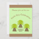 Este incrível convite para comemoração apresenta uma imagem gráfica de três árvores que se assemelham a palmeiras com grandes frondes verdes de folhas e um tronco de árvore marrom resistente. Há uma mensagem em texto marrom para parecer solo debaixo das árvores. A mensagem diz Feliz Dia da Terra.