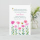 As flores cor-de-rosa "crescem" no fundo deste convite floral, enquanto duas abelhas ocupadas se zumbram nas proximidades. Este design é perfeito para as comemorações de aniversário de meninas. (FP)<br/>() O cartão é fácil de personalizar com a sua redação, fonte, cor da fonte e escolha de seis tipos de papel.<br/>() Não exatamente o que você está procurando? Todos os nossos produtos podem ser personalizados para atender às suas necessidades sem custos adicionais.<br/>() Basta entrar em contato conosco em askpixieprints@aol.com.<br/>() Coordenar os produtos disponíveis: