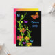 Este convite preto selvagem e funky de Mitzvah do bastão tem as videiras de néon e borboletas floridos verdes, alaranjadas, cor-de-rosa, roxas, amarelas e azuis nele, com uma parte traseira do rosa amarelo e quente brilhante. O texto e o tipo de papel são customizáveis. Se você gostaria de adicionar algum texto hebreu, uma estrela de David, ou se você exige quaisquer outros artigos de harmonização, envie por correio electrónico por favor niteowlstudio@gmail.com com seu pedido.