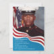 Uma bandeira patriótica, contemporânea em listras vermelhas e brancas com uma beira azul para seus sentimentos. Apenas adicione a foto do seu soldado especial para fazer-lhe seus próprios. O cartão é fácil de personalizar com seus fraseio, pia batismal, cor da pia batismal e escolha de seis tipos de papel.