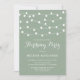 Este convite de aniversário elegante e caprichoso apresenta luzes de fada brancas suspensas sobre um fundo verde sábio. Personalize adicionando seus detalhes. Este convite de aniversário verde é perfeito para festas de aniversário ao ar livre.