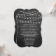 Simples, mas elegante, as luzes de cordas na coleção de casamentos de chalkboard é um design impressionante com luzes de cordas brancas adoráveis em um fundo de efeito de chalkboard, o que é perfeito para qualquer celebração de casamento moderna. Esses convites podem ser personalizados para sua ocasião especial e farão o anúncio perfeito para seu casamento, chá de panela, festa de noivado, festa de aniversário e muitas outras ocasiões especiais. Adicione seu texto personalizado a este design usando as caixas "Editar este modelo design" no lado direito do item, ou clique no botão azul "Personalizar" para organizar o texto, alterar as fontes e cores e também adicionar informações ou imagens adicionais a este design.