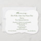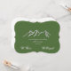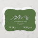 Este anúncio do casamento do costume caracteriza uma silhueta original do design da montanha que os olhares como as montanhas sejam cobertos na neve, sobre um fundo verde na moda (a cor do fundo pode facilmente ser alterada), e as citações populares do naturalista John Muir: "As montanhas estão chamando e eu devo ir." está embaixo. Igualmente lê-nos "foi… Nós Eloped!" e é customizável. A parte traseira do anúncio/convite é um modelo e deve ser personalizada. O texto na parte traseira é a mesma cor verde que a parte dianteira & pode igualmente ser mudado.