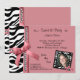 A fita e as pérolas cor-de-rosa com as listras preto e branco da zebra decoram este convite de festas contemporâneo. Transfira arquivos pela rede sua própria foto ao quadro funky da zebra para personalizar mais o olhar. Há uma abundância do texto customizável neste convite na moda adicionar sua informação do partido. Nós igualmente temos este design em várias cores. As cores de coordenação na parte de trás deste convite do luxuoso terminam o olhar!