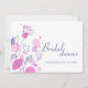 Belo marinho simples esboça flores com pétalas roxas roxas roxas, estilo confetti, chá de panela floral. Edite este convite colorido com suas próprias palavras. Design exclusivo de Sarah Trett.