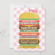 O convite de festas muito bonito do bebê Q com um Hamburger empilhado, as cebolas, a salmoura, a alface, o cachorro quente, o queijo, a mostarda, a ketchup, um fundo e a bandeira do teste padrão do piquenique do rosa do guingão que o lê "é uma menina!" Seu convidado amará este convite original do chá de fraldas dos casais. Personalize com seu próprio texto. Verifique por favor minha loja para ver se há mais como esta. Ilustração original pelo pj_design. Envie-me por correio electrónico se você precisa a ajuda. Você pode fazer a isto um cartão maior personalizando o e clicando nas opções de papel.