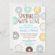 Este doce convite para o bebê borrifador apresenta as nossas rosquinhas desenhadas à mão em cores pastéis com o sprinkle confetti.