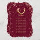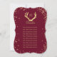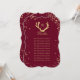 Dourada faísca com galhadas, cartão do plano de casamento em burgundy e ouro. Personalizar individualmente para cada mesa com um número de tabela e nomes de convidados em cada mesa.