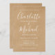 Apresentando nomes de estilo de assinatura, este elegante convite de casamento pode ser personalizado com suas informações em letras brancas chic em um fundo kraft rústico. Projetado por Thisnotme©
