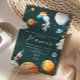 This whimsical space invitation was inspired by a dreamy mix of floating planets, watercolor rockets, and a cheerful astronaut holding galaxy balloons. Perfect for celebrating a first trip around the sun, it brings a playful, out-of-this-world vibe to your child’s birthday party.