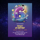 Se transforme em uma aventura inesquecível com este convite de aniversário 3D com tema espacial! Com um "6" massivo em matizes roxas e azuis vibrantes, o número é enfeitado com sotaques estrelados de prata e pequenos planetas embutidos, simbolizando o excitante sexto aniversário do menino. No topo do "6", um jovem astronauta senta-se orgulhosamente, vestido num traje espacial. A cena encantadora captura a maravilha do espaço sideral. Perfeito para uma celebração de temas celestiais, este convite promete uma experiência de festa fora deste mundo!