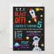 Celebre o aniversário do seu filho com nossos convites do Festa Espacial dos Astronautas! Apresentando foguetes, astronautas, naves espaciais, estrelas fotografadas e detalhes de seu partido personalizado na tipografia moderna. Personalize os convites adicionando o nome do seu filho e os detalhes da festa.