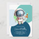 Crie o seu próprio Astronauta, Lua, Rocket Blue primeiro aniversario Invitation! Personalize esta design com seu próprio texto. Você pode personalizar este design selecionando o botão "Editar Detalhes".