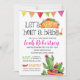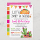 Ataque do nosso Taco 'um bebê - o convite do chá de fraldas caracteriza uma mistura colorida de brilhante, de corajoso, cores, e gráficos mexicanos da festa do divertimento tais como um taco, um sombrero, um cacto e um mais! Aperfeiçoe para qualquer taco ou chá de fraldas mexicano do tema da festa! Também disponível em nossa loja com um fundo do quadro.