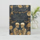 Apresentando nossa versão de ouro "ATÉ A MORTE DO NÓS PARTE" Convite para Casamento, destacando rosas de ouro e dois esqueletos apaixonados por fundo de ouro. Este design eclético incorpora elegância, estilo e glamour, fazer-o como uma escolha ideal para vários temas de casamento, incluindo casamentos de glamour, celebrações de temas dourados, e casamentos de verão encantadores, casamento gótico. A redação é perfeitamente editável. Você pode alterar tamanho, cor, fonte, posição na página.