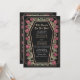 Faça uma declaração ousada de amor eterno. Este convite de casamento gótico apresenta "Até a morte nos separe" em um quadro em forma de caixão, enfeitado com espinhos, rosa e sotaques de ouro rosa contra fundo preto. Perfeito para uma comemoração romântica assombrosa! Personalize o texto, a fonte e a cor de fundo para se adequar às suas preferências de design. Correspondência de Itens em nosso compro para um tema completo de festa. Note que o ouro de rosa do convite NÃO é folha de alumínio real e é impresso em cores planas.