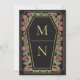Faça uma declaração ousada de amor eterno. Este convite de casamento gótico apresenta "Até a morte nos separe" em um quadro em forma de caixão, enfeitado com espinhos, rosas e sotaques de ouro contra fundo preto. Perfeito para uma comemoração romântica assombrosa! Personalize o texto, a fonte e a cor de fundo para se adequar às suas preferências de design. Correspondência de Itens em nosso compro para um tema completo de festa. Note que o ouro do convite NÃO é uma folha real e é impresso em cores planas.