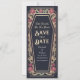 Faça uma declaração ousada de amor eterno. Este casamento gótico "Save-The-Date" apresenta "Till Death Do Us Part" num quadro em forma de caixão, enfeitado com espinhos, rosa e sotaques de ouro rosa contra fundo azul profundo. Perfeito para uma comemoração romântica assombrosa! Personalize o texto, a fonte e a cor de fundo para se adequar às suas preferências de design. Correspondência de Itens em nosso compro para um tema completo de festa. Observe que o ouro de rosa das placas NÃO é folha real e é impresso em cores planas.