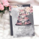 Até que a morte nos separe do bolo de casamento. Convites de casamento com temas góticos feitos por Ricaso - desenhados com uma cinza e bolo de casamento cor-de-rosa com flores e crânios. Perfeito para o casal que é o melhor possível. Um maravilhoso anúncio de casamento estranho convidando para o casal único