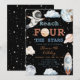 Chega Ao Quarto Convite De Aniversário Do Stars Boy Space. Convite Espaço exterior Doce ou Alcance Quatro O convite de 4° aniversário das Estrelas para um bebê Menino com um pequeno sol, planeta, estrelas, nave espacial e homem espacial. Este Rapaz chega aos quatro As Estrelas é ideal para uma festa de 4 anos do templo espacial.