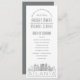 Um programa de casamento com temas do skyline deco para um casamento acontecendo na bela cidade de Atlanta, Geórgia. Este cartão do programa de casamento apresenta uma ilustração estilizada do horizonte único da cidade com seu nome embaixo. Isto está descansando debaixo da informação do dia do casamento em um estilo aberto. No verso está uma cor de cinza de níquel macio com mais detalhes de casamento em texto branco para felicitar a frente. Uma na moda de maneira a dar boas-vindas a pessoas que saem da cidade, ao mesmo tempo que lhes dá informações úteis sobre a sua série de eventos de cerimônia de casamento.
