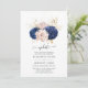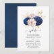 Vintage blush cor-de-rosa, azul-marinho e ouro floral adiou o convite para o casamento com tipografia elegante personalizável para suas especificidades de evento.