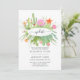 Suculenta ilustração botânica adiou o anúncio de casamento com uma grande variedade de plantas de cacto, incluindo saguaro gigante, bola, cowboy, rabo vermelho, euforia ingens, ouvidos coelhos (bolinhas), escova de cabelo, pera picante e cacto artesanal.