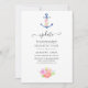 Marinho de tendências e anúncio de casamento náutico adiado branco com âncora floral de cor d'água, flores e faixas de marinho no verso.