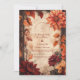 Uma design romântica de outono, que apresenta ricas dálias em tons de burgundy e laranja queimada, rodeada por delicadas vinhas e folhas em queda. Colocado em um fundo de pergaminho de vintage, este design evoca calor, elegância e charme sazonal — perfeito para um casamento outono com apelo de eterno. Facilmente personalizado para se adequar à sua celebração.