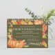 Um modelo de janto de Amizade muito colorido e fácil de personalizar. Uma variedade de folhas ouros amarelas e vermelhas escuras enquadram seus detalhes de Janto de Amizade. As luzes das cordas aumentam o brilho. Duas abóboras e bagas juntam-se à design festiva do outono. O texto branco sobre verde-oliva escura é realmente pop.
