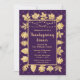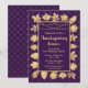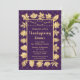 Este elegante e glamouroso convite de festas de janto de ação de graças apresenta folhas de ouro e luzes de fada em um fundo de diamante roxo escuro. O texto combina o script manuscrito e as fontes sans serif modernas para um aspecto elegante e sofisticado. Os elementos de outono e de outono são perfeitos para as festas de Ação de Graças e de jardim sazonal.