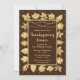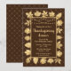 Este elegante e glamouroso convite de festas de janto de ação de graças apresenta folhas de ouro e luzes de fada em um fundo de diamante marrom-escuro. O texto combina o script manuscrito e as fontes sans serif modernas para um aspecto elegante e sofisticado. Os elementos de outono e de outono são perfeitos para as festas de Ação de Graças e de jardim sazonal.