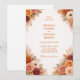 A warm and sophisticated design inspired by autumn tones, featuring rich orange, peach, and blush floral arrangements. The composition is framed by lush botanical elements that create a harmonious and balanced layout. Soft textures and elegant typography enhance the timeless, romantic aesthetic, evoking a cozy and nature-inspired atmosphere.