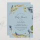 Este convite para chá de fraldas verde de outono é perfeito para um chá de fraldas de outono. A design moderna rústica apresenta folhas azuis marinhos, verdes-sábios e douradas com espirros de flores azuis escuras.