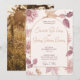 This Romantically subtle shades of Blush Pink, Mauve, and Soft Terracotta Leaves and Flowers give this Wedding Invitation an elegant Autumn feel with a hint of Bohemian. The desired watercolor style adds just the right feminine aesthetic! The Elegant Script and the Simple Design placement of your info give everything an easy ability to be read! Put your Favorite Photo of the two of you on the back!