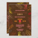 Assuma o espírito de gratidão e em conjunto com o nosso belo convite. Contra um pano de fundo moreno e escuro adornado com ilustrações desenhadas à mão de folhas e bagas de outono em tons vermelhos, laranja e amarelos, este convite evoca certamente o encanto acolhedor da época. O texto é totalmente personalizável.