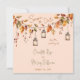 Vibrant Autumn Leaves and Lanterns Square Save The Date Wedding Announcement card. The Elegant Script font adds a feminine touch and the soft Orange background blends nicely with the Terracotta, Burnt Orange and Yellow colors beautifully. Add your specific information in the easy to use template.