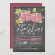 Apaixonem-se por estes elegantes convites para bebês gêmeos no chuveiro do outono. Design apresenta duas abóboras cor-de-água rosa adornadas com folhas de outono. "Duas pequenas abóboras estão a caminho" aparece nas letras de um roteiro de caligrafia em fundo de quadro. Personalize com seu chá de fraldas e detalhes do registro abaixo em letras brancas.
