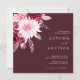 Celebrar um romântico casamento de outono com este elegante convite floral que inclui uma estrutura de diamante geométrico dourada, dahlias de burgundy de aquarela, peônias de pincel e folhagem de queda rústica. Perfeito para o exterior, jardim de vô ou casamentos rurais com um toque aconchegante e antigo.