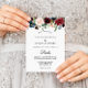 Este convite de casamento espanhol, deslumbrante e deslumbrante, no outono é perfeito para um casamento moderno. A design apresenta flores brilhantes, vermelhas, marinhos, azuis e esbranquiçadas radiantes e graciosas pintadas à mão, inspiradoras beleza natural.