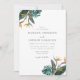 Convites elegantes e tropicais de casamento, com aves aquáticas de paraíso e folhas tropicais verdes ricas nos cantos. Personalize o convite para o casamento do pássaro do paraíso adicionando detalhes do casamento, como seus nomes, data do casamento, hora, local, etc. Os convites de casamento tropicais modernos são perfeitos para casamentos de destino!