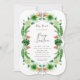 Este convite maravilhosamente tropical apresenta um quadro composto de folhas desenhadas à mão e aquáticas, samambaias, frondes de palma e pássaros coloridos de flores do paraíso. Cores brilhantes. Seu texto pode ser personalizado e ajustados bem no quadro tropical. Perfeito para o seu chá de fraldas tropical. Inverter no padrão de frondes de palma.