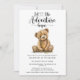Que a aventura comece, tema de chá de fraldas com um simples ursinho de pelúcia. Sexo neutro para garotinha.