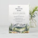 Esta bela aventura rústica começa o convite para o casamento mostra montanhas pintadas por aquarela paisagem, floresta, pinheiros e adorável apoio verde de sábio, perfeito para o outono, inverno ou casamento de destino. Personalize-o com os detalhes do dia do seu casamento.