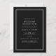 Este convite apenas para recepções de casamento do Avery Suite apresenta um fundo preto escuro, um quadro branco fino duplo e um tipo de serif de sans limpo. Ele cria um olhar moderno e polido adequado a locais de cidades, galerias e casamentos noturnos. As placas RSVP são vendidas separadamente ou você pode adicionar informações RSVP à parte traseira da placa.