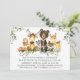 Watercolor Woodland Animal Birthday Invitation. Os bebês incluem Urso, Veado, Moose, Raccoon, Coelho Coelho, Raposa e Coruja em folhas de eucalipto e verde florestal.
