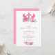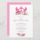 Flores cor-de-rosa e brancas buquês com pássaros cor-de-rosa em torno de uma cruz rosa, primeira tipografia comunitária, um convite elegante moderno.