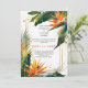 Pássaros do Concurso de Casamento de Feliz Paraíso: mergulhem seus hóspedes no atrativo da elegância tropical com nosso belo convite. O fundo ao estilo aquarela apresenta uma bela estrutura adornada com Pássaros vibrantes de flores do Paraíso, folhas verdes e linhas de hetero delicadas, criando um pano de fundo cativante. O ponto focal é uma área de escrevendo branco intocado na frente, exibindo elegantemente os detalhes essenciais do casamento: os nomes dos casais, data e local. O verso oferece um toque personalizado, proporcionando amplo espaço para uma mensagem personalizada do casal, criando uma conexão duradoura entre você e seus queridos convidados. Defina o tom para sua celebração com este convite encantador, onde a beleza encontra a funcionalidade em perfeita harmonia